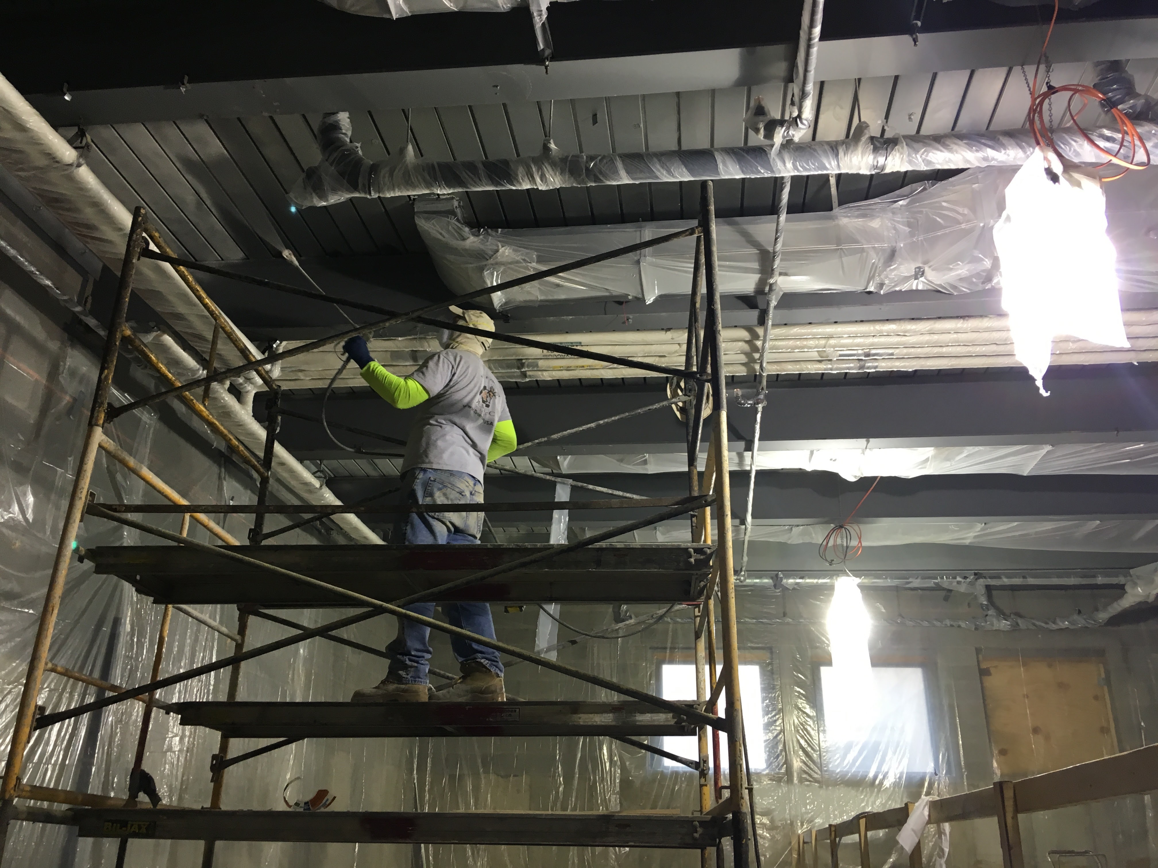 Spray-applied acoustical and protective coating work completed at the College of Wooster for improved interior performance.